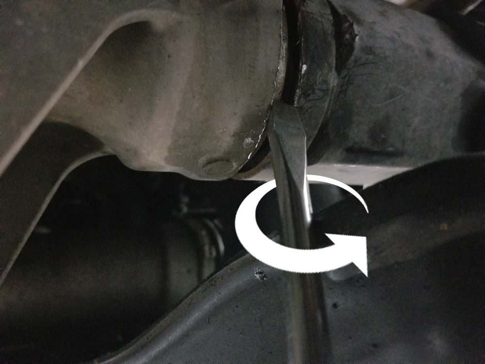 - Using a 24mm socket and a breaker bar, loosen the nut anchoring the tie rod to the steering knuckle. Use a T40 torx bit to counter hold the tie rod while removing the nut with a boxed end wrench. If you don’t have a 24mm wrench, an adjustable wrench works great too.
